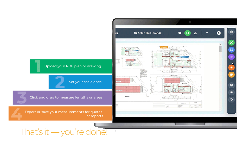 Whether you’re a builder, tiler, painter, carpenter, architect, or interior designer, Delari PDF Measure helps you work out exact measurements straight from your digital plans — in minutes, not hours.